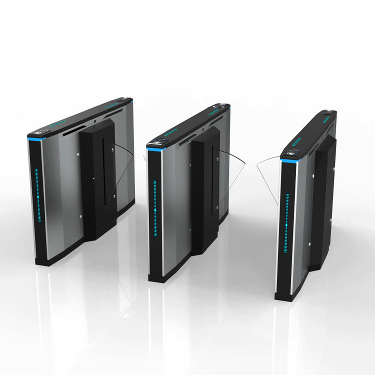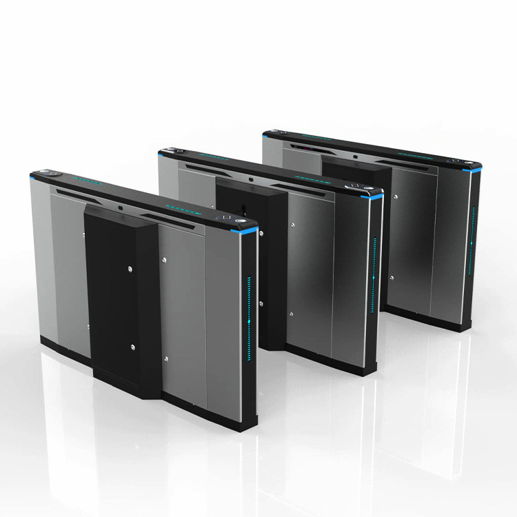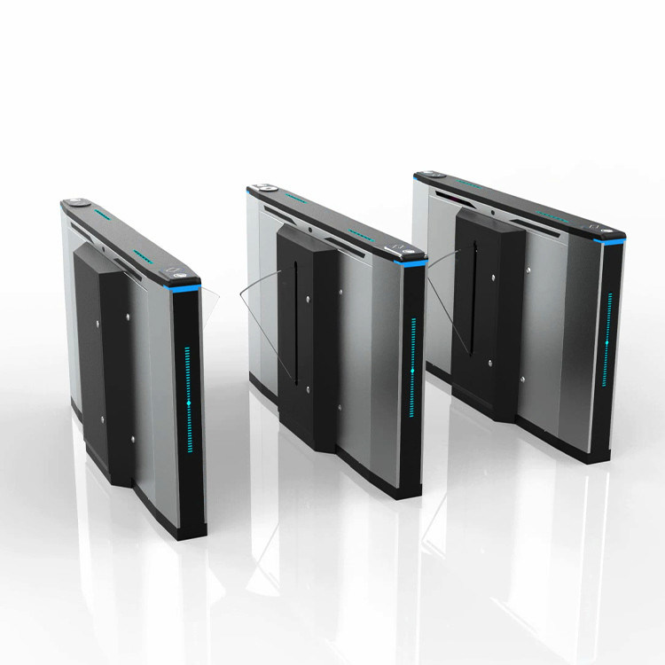 4. La puerta del torniquete de la barrera de la aleta tiene una alarma audible y visible. Cuando la puerta está en modo espera, su LED es azul. Mientras que alguien camina sobre él, ilumina verde. Cuando alguien intenta utilizar la ruta de la puerta sin el permiso, enciende rojo. Para alertar a gente a la violación de la autorización, las señales sonoras del zumbador de la puerta.